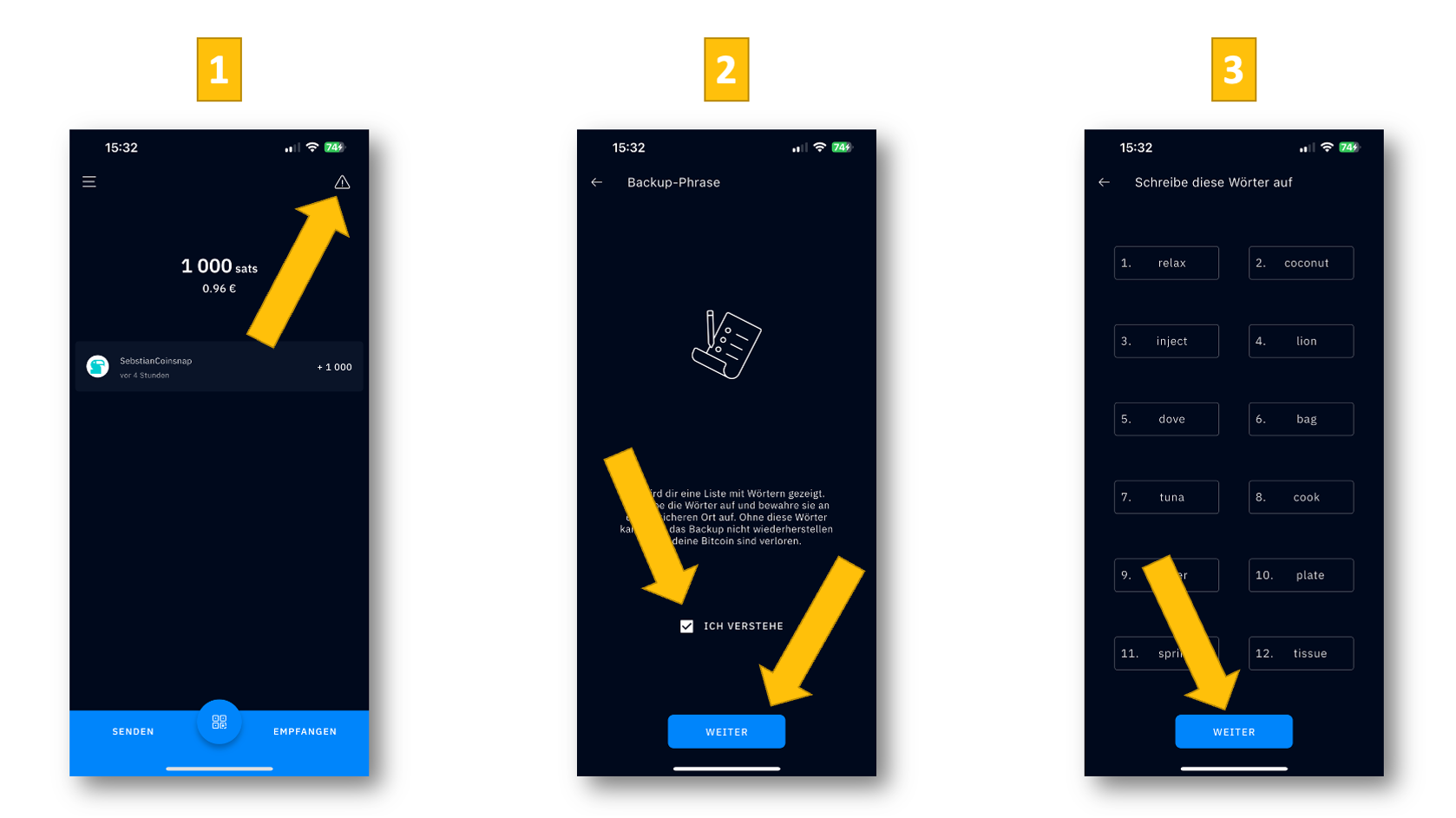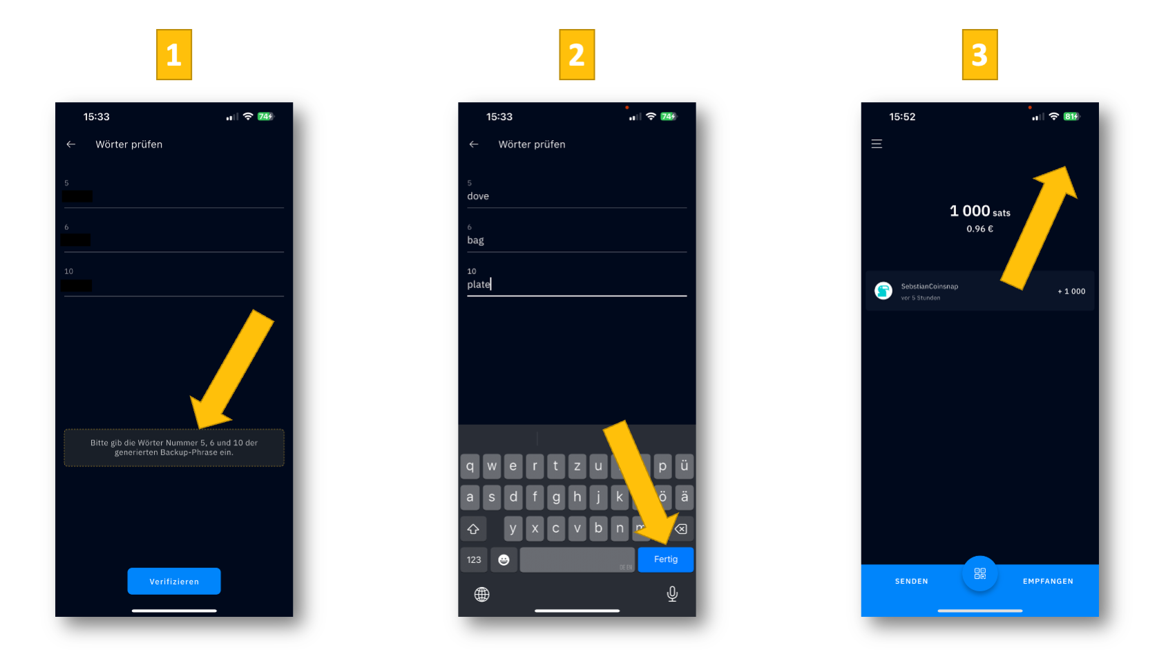 Misty Breez – similar to hardware wallets such as Bitbox – takes away this worry: you can generate so-called seed words in the app, which you can use to restore your account at any time and immediately regain access to your Bitcoin assets.