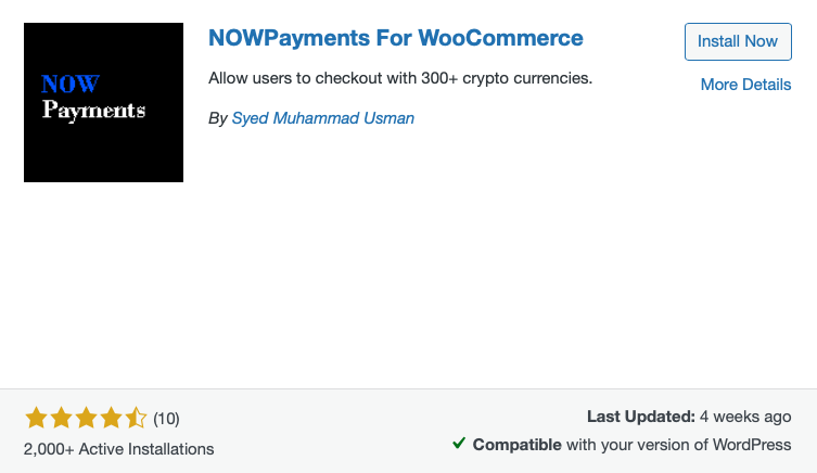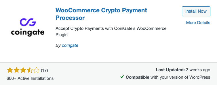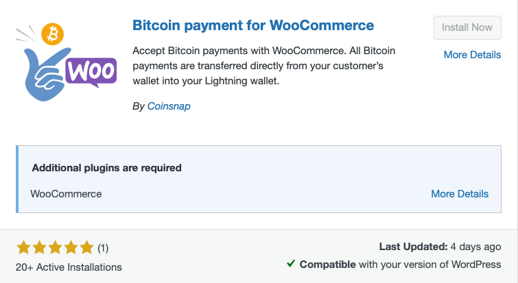 However, an important note for merchants: Of the four cryptopayment plugins listed on Woo Marketplace, only Coinbase Commerce offers Bitcoin Lightning payments – the other three plugins only support other cryptocurrencies. Furthermore, Coinbase only works if both the buyer and the merchant have a Coinbase wallet, which significantly limits the customer base.