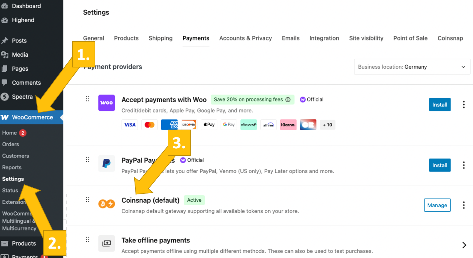 Adding Bitcoin to WooCommerce can be truly no-code when you pick the right plugin: install it directly from your WordPress plugin repository, connect it with your processor, enable it under WooCommerce → Settings → Payments, and you’re live in minutes.