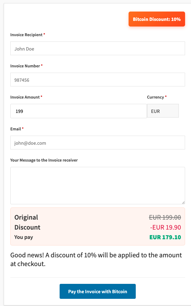 3. The Bitcoin Invoice Form from the Customer’s Perspective
