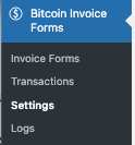 - After activation, a new menu item appears: Bitcoin Invoice Forms.