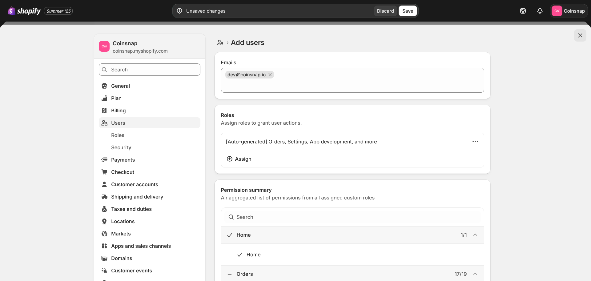 Input Partner’s account e-mail and assign role “(Auto-generated) Orders, Settings …”: