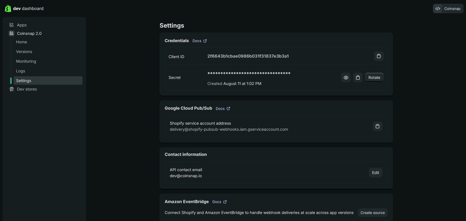 2. Coinsnap for Shopify App deployment