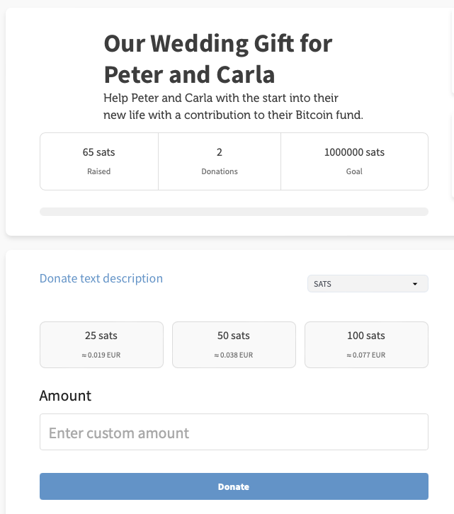 After successful payment, you will then see he updated crowdfunding box (with the current status of sats received, and the new shoutout: