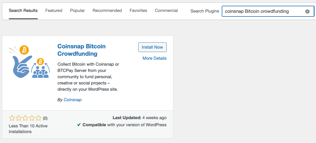 Enter Coinsnap Bitcoin Crowdfunding in the search field.