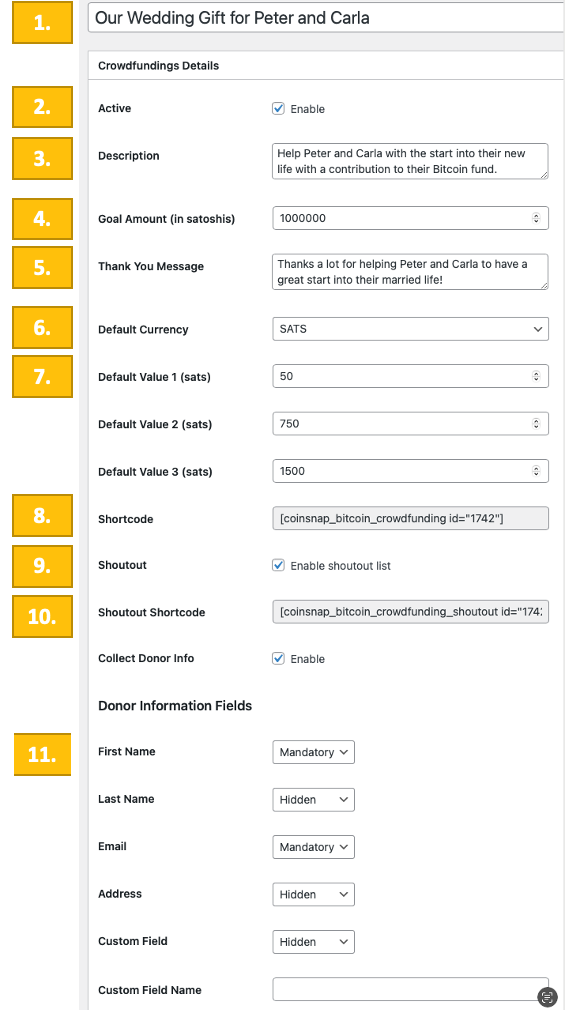 Bitcoin Crowdfunding Coinsnap Settings