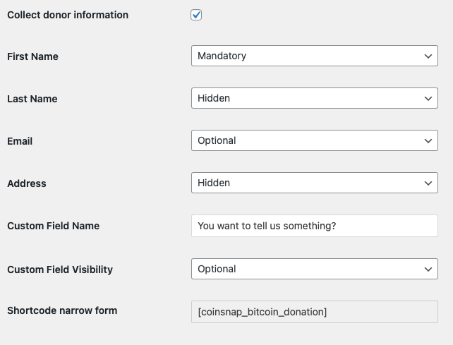 Now just choose which information you want to gather, and if you want it to be a mandatory information or leave it as an option for your donor to decide.