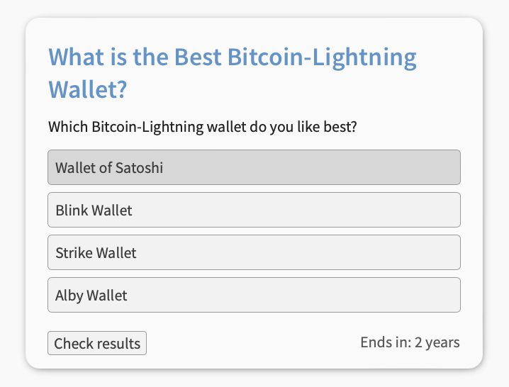 First, cast a vote in a Coinsnap Bitcoin Voting poll box that you placed on your website (just click on your choice).