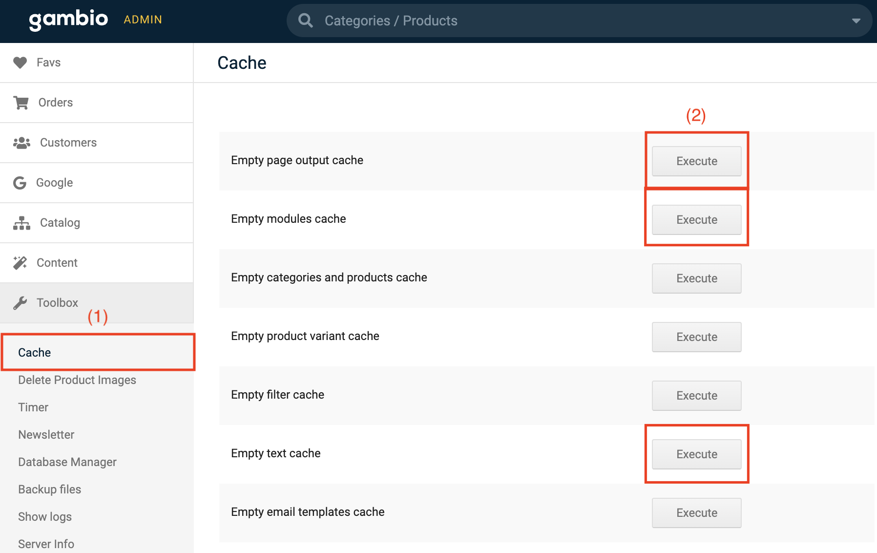 After successful installation, return to the cache area and delete the module, output and text cache again.
