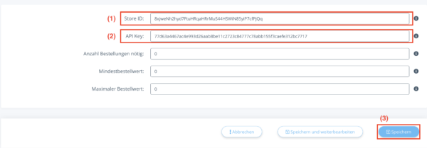 Enter the store ID and api key that you copied earlier in the correct fields.