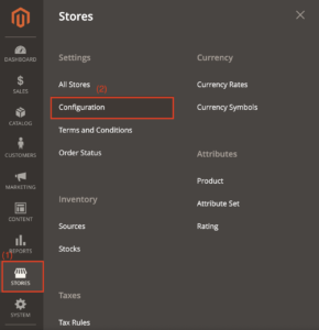 Find the “Stores” section on the left-hand side of the Magento login page and click on it.