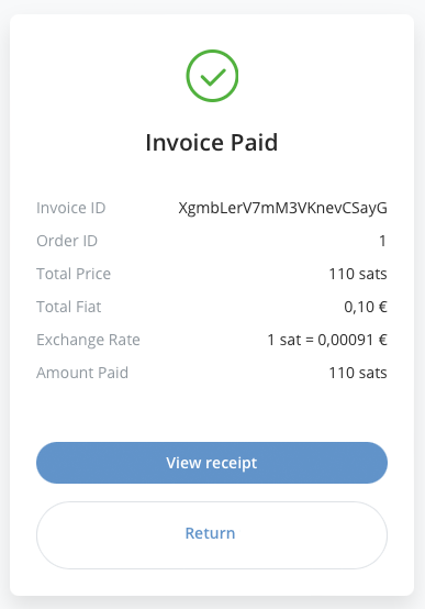 The buyer just needs to scan the QR code with his Bitcoin-Lighting wallet and authorize the payment, and the money is transferred to your (the merchant’s) Bitcoin-Lightning wallet!