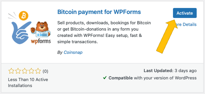 The Coinsnap for WPForms plugin is now successfully installed. Now you need to upgrade your WPForms to WPForms Pro. When that is done, you can start configuring the Coinsnap for WPForms settings in your WPForms settings.