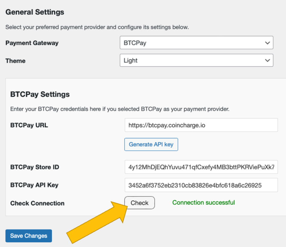 Your BTCPay Server is now successfully connected to your WPForms plugin, via the Coinsnap for WPForms plugin!