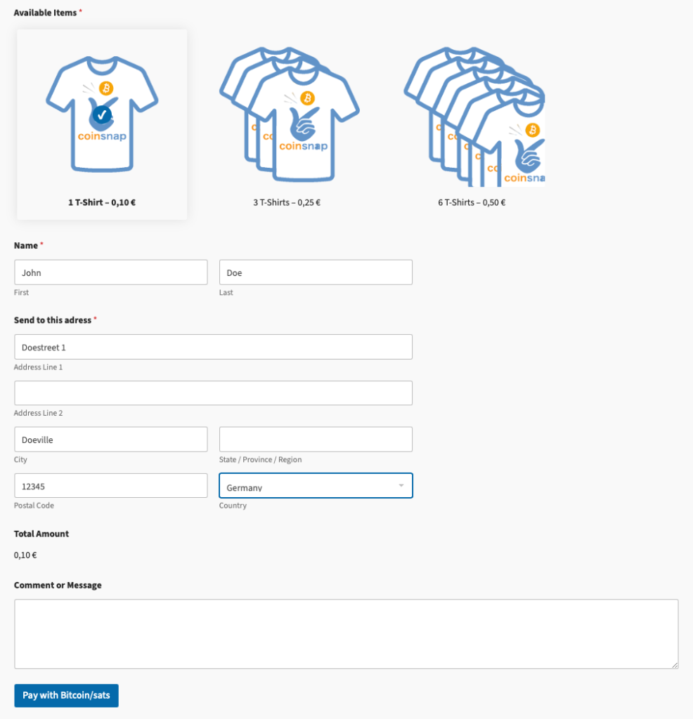 Once you have entered and saved the Coinsnap data in the WPForms Coinsnap settings, you are set to receive Bitcoin transactions from your customers’ wallet to your wallet. Now just one last step remains and you can sell for Bitcoin!